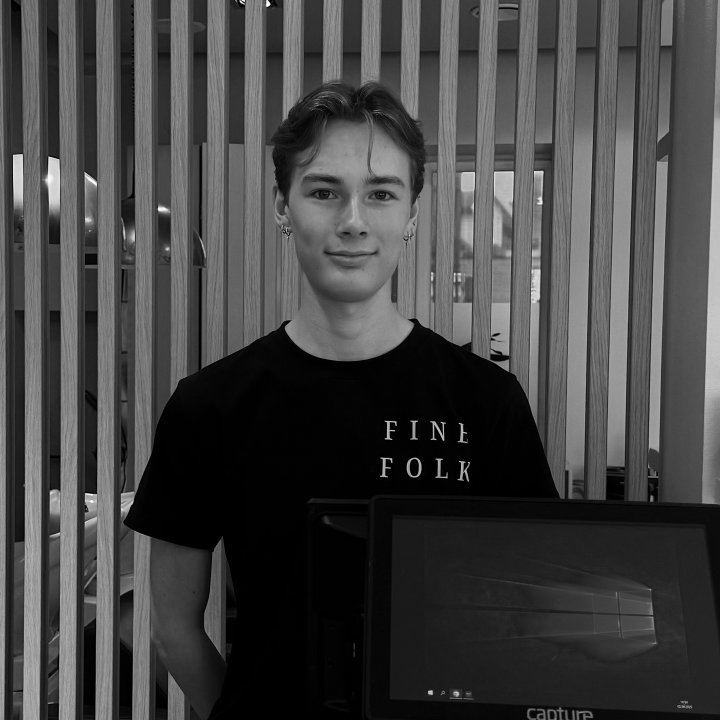 Imre kommer fra Spydeberg, og begynte lærlingstiden hos oss høsten 2025. Han trives med varierte hverdager hvor han kan utfordre ferdighetene sine innen for farge- og blekebehandlinger, samt klipp. Det er 50% rabatt på alle behandlinger utført av Imre.